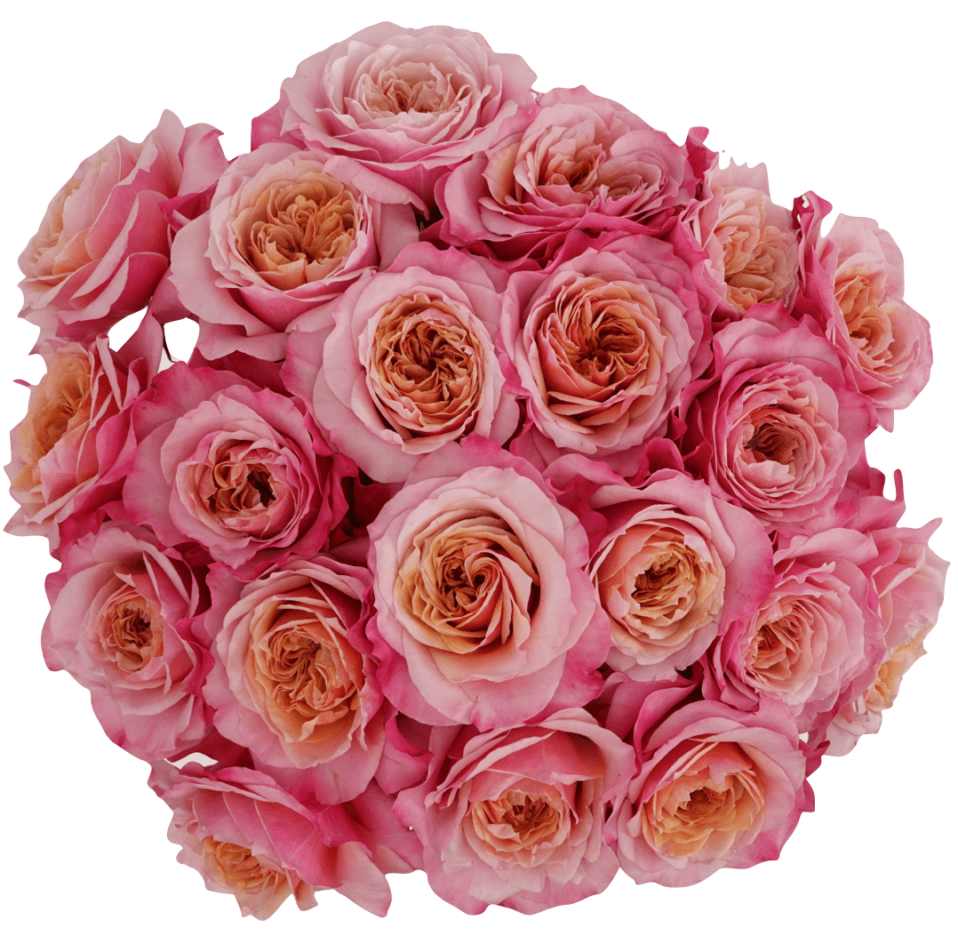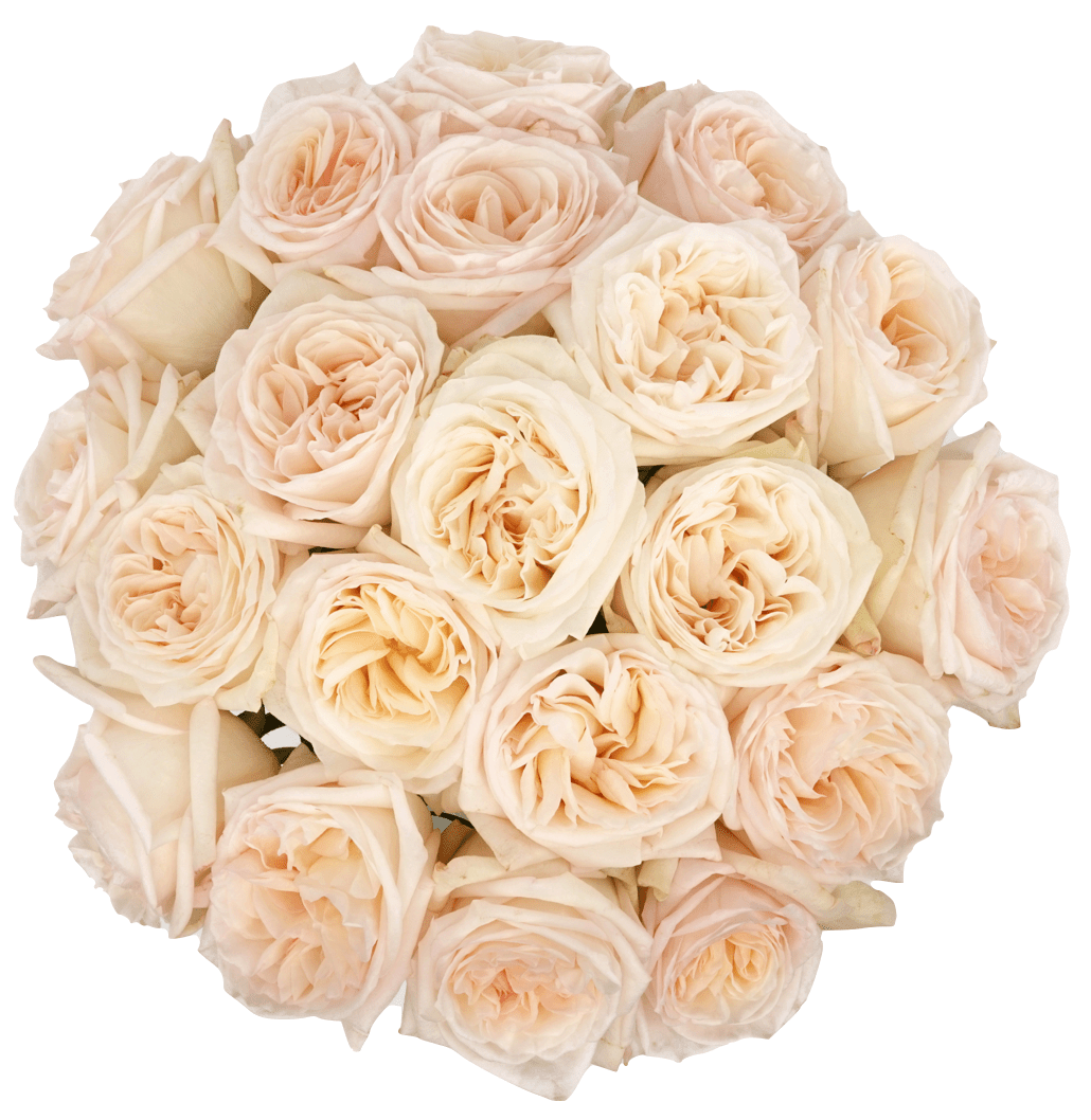 Our Peaches & Cream Bouquet: Two Dozen (24 Fragrant Garden Roses) with over 100 petals each + decorative greens. Easy care instructions for long life of your roses included.